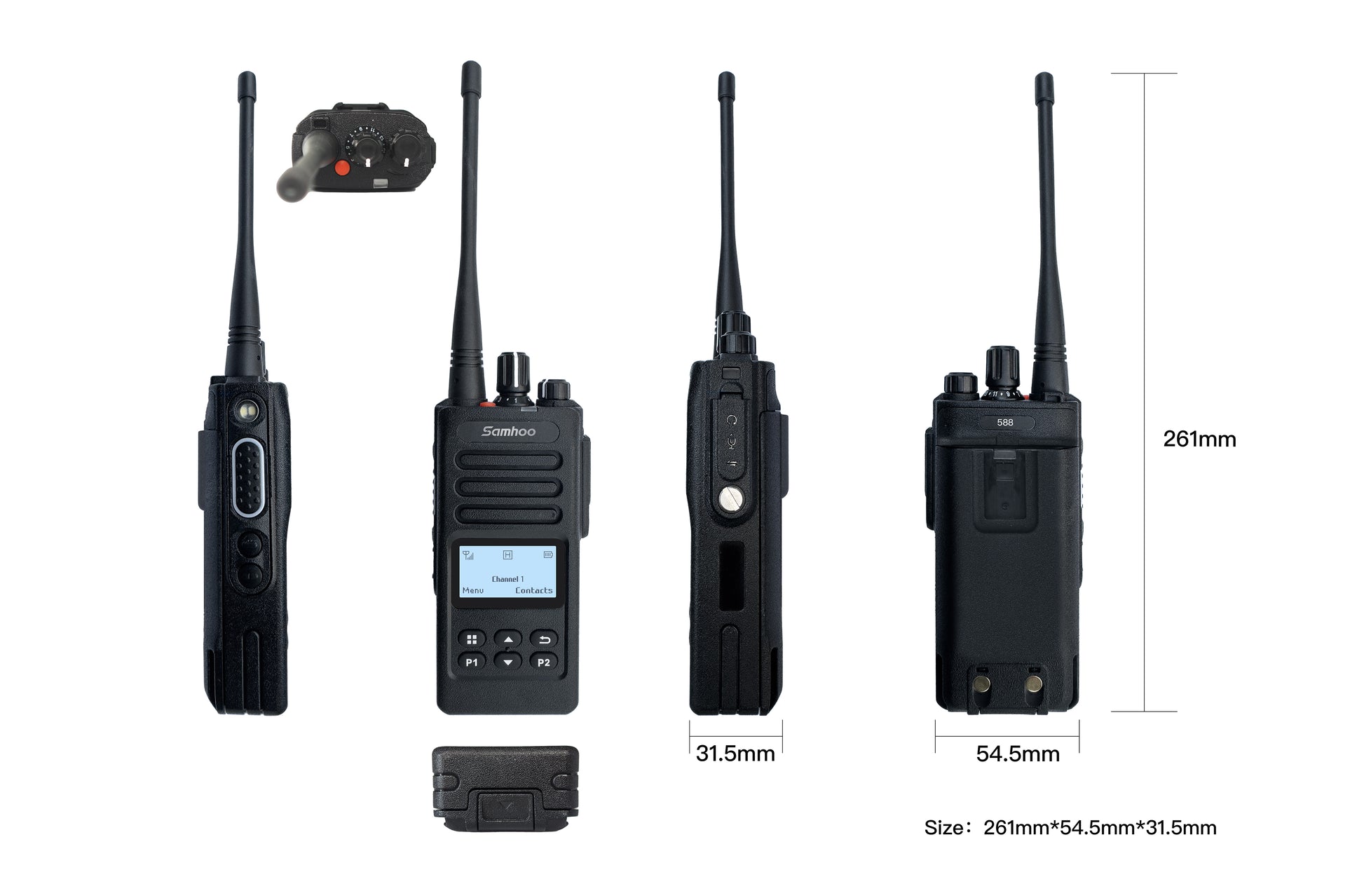 The D588 digital handheld radio is designed as Durability, Safety and Reliability to ensure confident and easy handling. With advanced RF and AI audio processing, it achieves superior communication range, and loud & clear Audio quality. D588 complies with the standard ETSI DMR protocol and supports Tier1 and Tier2 modes, and is compatible with other DMR terminals(Motorola, Hytera etc). D588 supports both digital and analog modes, so that achieve a smooth transition between analog and digital radios.